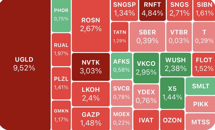 📈 В плюсе: Татнейть-ап (+22%), ТГК-2 (+20%), Лукойл (+13%)