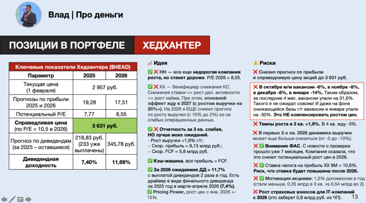 В декабре удалось пополнить портфель на 200 000, 2,4 млн за год. План выполнен на 100%. На 2026 год ставлю план min–max 1,2–2,4 млн. Нужно кубышку пополнять, да и отпусков много зимних запланировано.